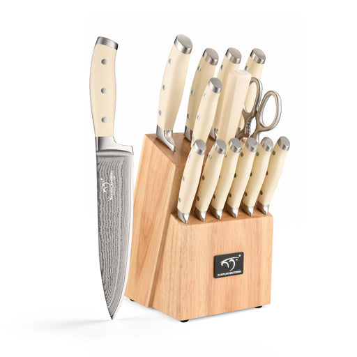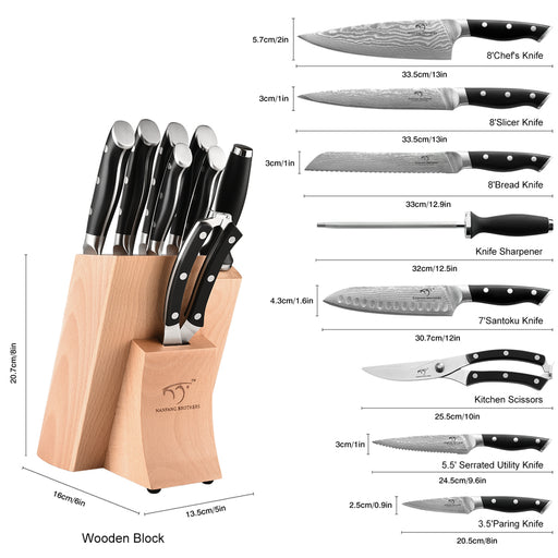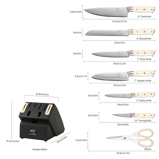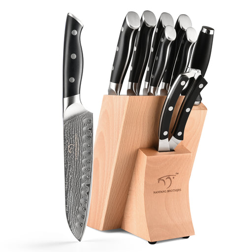 PROFESSIONAL JAPANESE STYLE - The knife block set consists of a VG-10 steel core with 67 layers and superior Damascus steel blades for precision...
