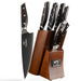 • Complete 7 Pieces Kitchen Essentials - Includes: 8" Chef Knife, 8" Bread Knife, 7" Santoku Knife, 5" Utility Knife, 3.5" Paring Knife, Kitchen Shears, and a 6-Slot Wood Block. Everything you need for effortless cooking!